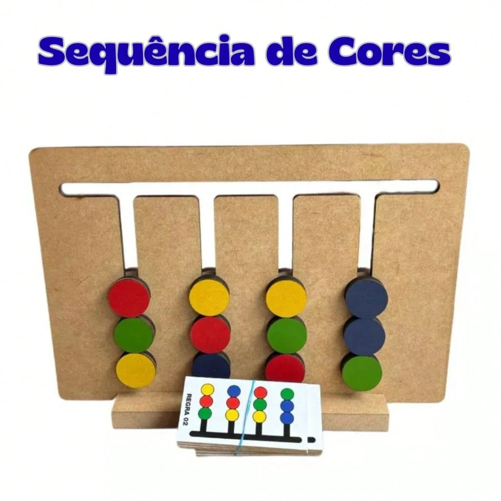 A criança precisa seguir o modelo das cartas e organizar as bolinhas na ordem correta. Isso fortalece memória visual, coordenação, raciocínio lógico, percepção de cores e atenção. Também trabalha regras e sequência, algo essencial para alfabetização e matemática.